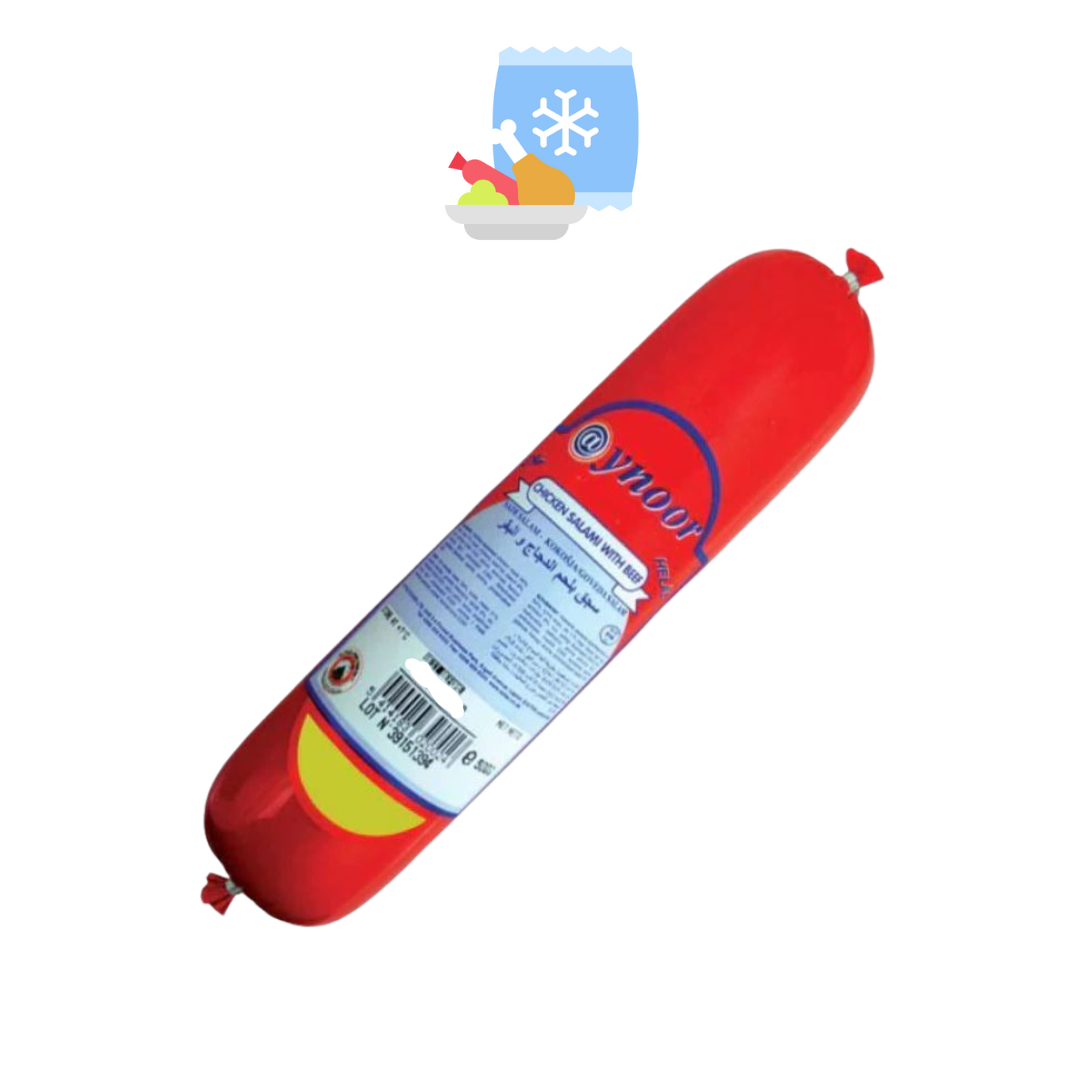 Aynoor Chicken Salami with Beef is a unique halal-certified blend of high-quality chicken and beef, pre-sliced for convenience. Seasoned with traditional spices, it offers a rich, smoky, and savory flavor. Perfect for sandwiches, pizzas, charcuterie boards, or as a protein-packed snack. Ready to eat straight from the pack, this 450g size is ideal for sharing or family meals.