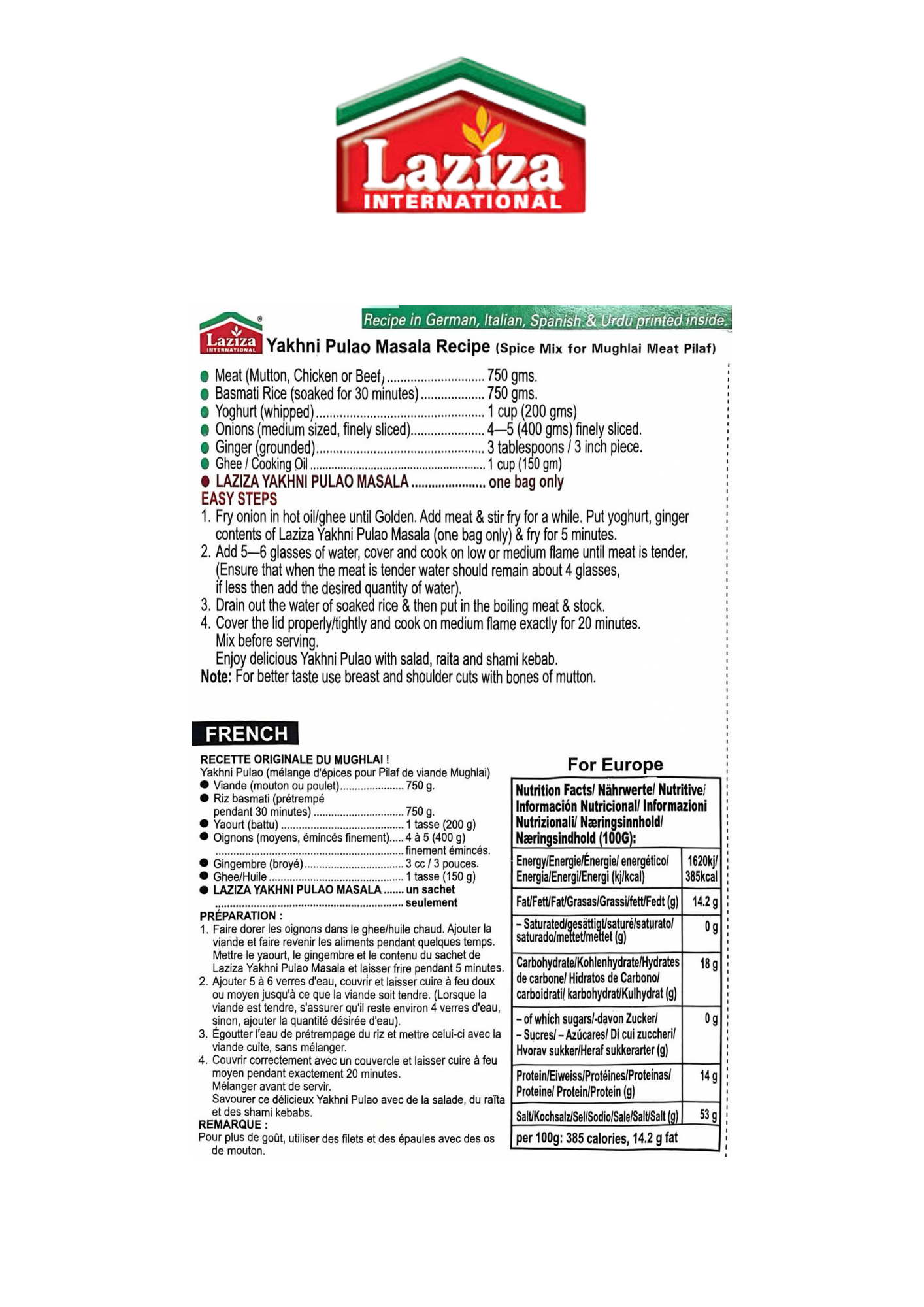 Laziza Yakhni Pulao Masala
