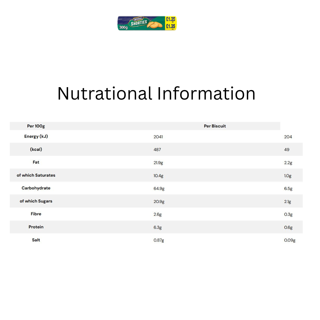 Deliciously crisp and buttery shortbread biscuits in a convenient 300g pack. Perfect for teatime treats, sharing, or gifting.